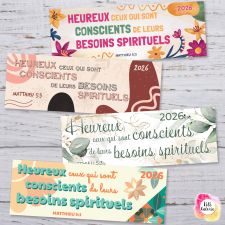 4 Marque-pages avec le Texte de l'année 2026 : “Heureux ceux qui sont conscients de leurs besoins spirituels” (Matthieu 5:38)