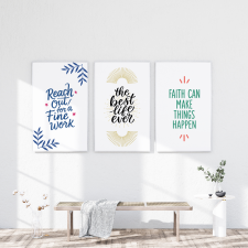 Bring encouragement, joy, and faith-filled beauty to your space with this set of 3 hand-lettered art prints. Featuring modern designs and uplifting phrases, this collection is perfect for anyone who values meaningful artworks: •  Reach Out for a Fine Work •  The Best Life Ever...